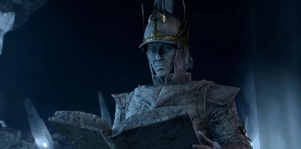 그리고 안수르의 시체 뒤에는 발두란의 투구가 놓인 작은 방이 있습니다. 투구를 잡으면 작은 컷신이 재생되고 이 투구에 오어더의 정수가 아직 살아 있고 착용자를 보호할 것임을 나타냅니다.