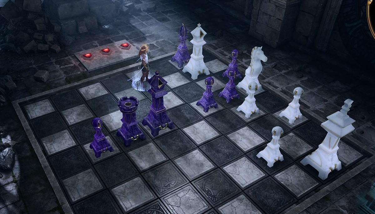 재판소 퍼즐에서 짧은 계단을 올라가세요. 그런 다음 앞의 문을 통해 전략의 방 퍼즐로 이동하세요. 이후 퍼즐 앞에 있는 석상에게 말을 걸면 게일이 조언해주는데 두 가지 행동으로 퍼즐을 해결할 수 있습니다. 그의 조언을 따르거나 검은색 킹 조각을 직접 공격할 수 있습니다.