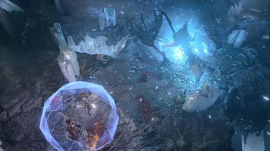 이제 두 턴이 지나면 안수르는 중앙으로 들어가 힘을 모으기 시작합니다. 이런 일이 발생한다면 엄청난 양의 번개 피해를 대비하기 위해 파티원을 근처에 있는 흰색 수정 뒤에 숨기도록 합시다. 안수르가 전투 중 2턴마다 이 동작을 수행합니다.