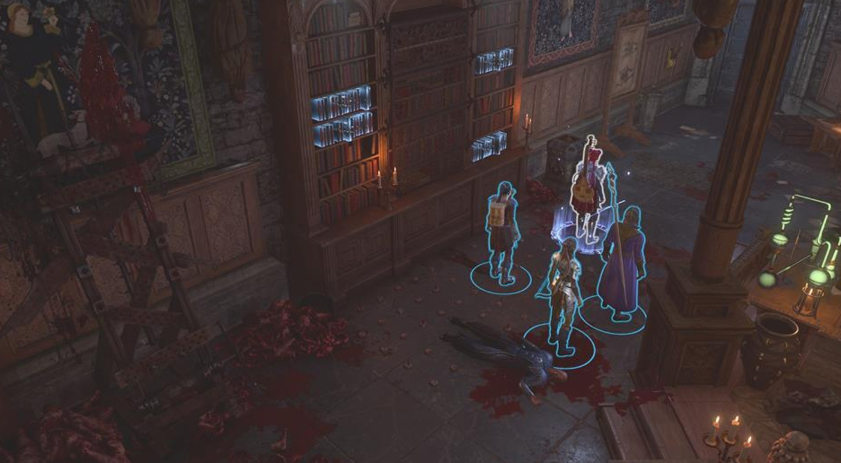 발타자르의 방은 탑의 동쪽에 있습니다. 발타자르의 방에 처음 들어오면 아이템을 약탈하고 싶을 것입니다. 실제로 왼쪽 벽의 책장에 접근하면 파티원 중 한 명이 튀어나온 책이 여러 개 표시되는 인식 확인에 성공할 수 있습니다. 무엇을 선택하느냐에 따라 다양한 결과를 얻을 수 있는데 오른쪽 상단의 튀어나온 책과 상호 작용하면 책장 옆에 있는 제단의 잠금이 해제됩니다. 다른 책과 상호 작용하면 먼저 방에 있는 시체 두 개를 좀비로 되살리며 잘못된 책을 계속 쳐다보면 책꽂이 앞에 스파이크가 생깁니다.