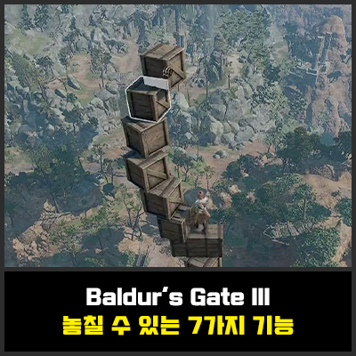 발더스 게이트3에서는 다양한 상자를 쌓아 올라갈 수 있습니다. 이는 단순히 상자를 쌓는거에 끝나지 않고 쌓은 뒤 그 위로 이동할 수도 있고 상자를 쌓아 입구를 막는 등 다양한 플레이로 이어질 수 있습니다. 상자를 쌓고 그 위에 서면 전투에서 높은 지대를 얻을 수 있습니다. 이는 공격 굴림에 +2 보너스를 추가합니다.
