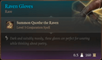 ※ 그와 싸우게 된다면 주위에 있던 까마귀는 한두 턴에 쓰러지지만, 공격을 받으면 공격받는 캐릭터의 눈이 멀게 될 수 있으므로 조심해야 합니다. 반면에 존재했던 자는 공포 주문을 사용하여 무기를 떨어뜨리고 몇 턴 동안 그에게서 도망가게 만드는 것을 좋아합니다. 또한 어둠의 구름을 불러와서 그 안으로 들어갈 때 눈이 멀게 할 수도 있지만 전반적으로 어려운 싸움은 아닙니다. 하지만 그는 실제로 약탈할 가치가 있는 것이 하나도 없습니다.