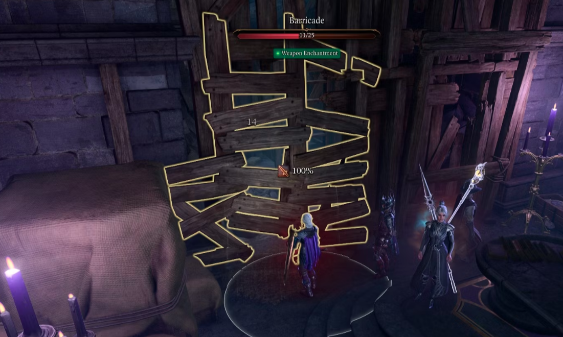 벽에 나무 바리케이드가 있는 것을 볼 수 있습니다. 무기를 사용하여 문을 부수고 사다리를 찾은 뒤 올라가세요.