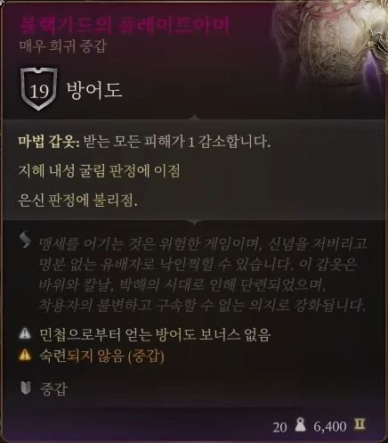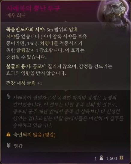 사레복과 적들을 모두 물리쳤다면 다음 퀘스트 진행을 위해 필요한 바알의 부적과 블랙가드의 플레이트아머 등 다양한 매우 희귀 장비들을 획득할 수 있습니다.