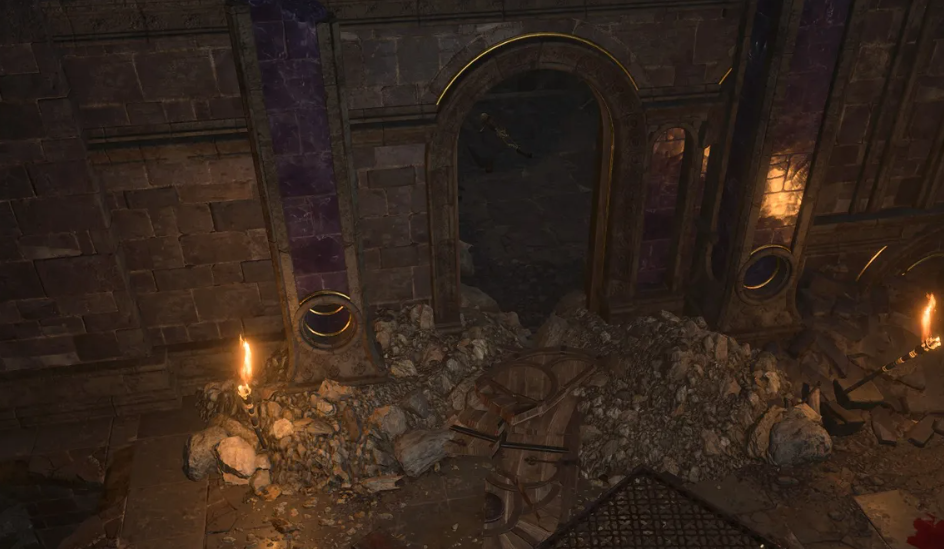 이후 모든 파티원이 건너가 이동하면 앞에 있는 방의 계단 맨 위에 해골에서 방패 주형(X: -559 Y: 410)을 획득할 수 있습니다.
