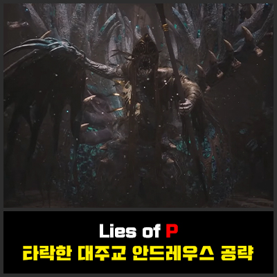 P의 거짓의 타락한 대주교 안드레우스는 성 프란젤리코 대성당에서 만날 수 있는 보스로 그곳에서 탐욕과 변화된 모습에 빠져 이제는 자신이 신이 선택한 천사라는 착각 속에 살고 있습니다. 이 보스는 대주교의 제단 근처에서 찾을 수 있으며 이 전투에 성공하면 대주교의 제단 스타게이저를 활성화할 수 있습니다.