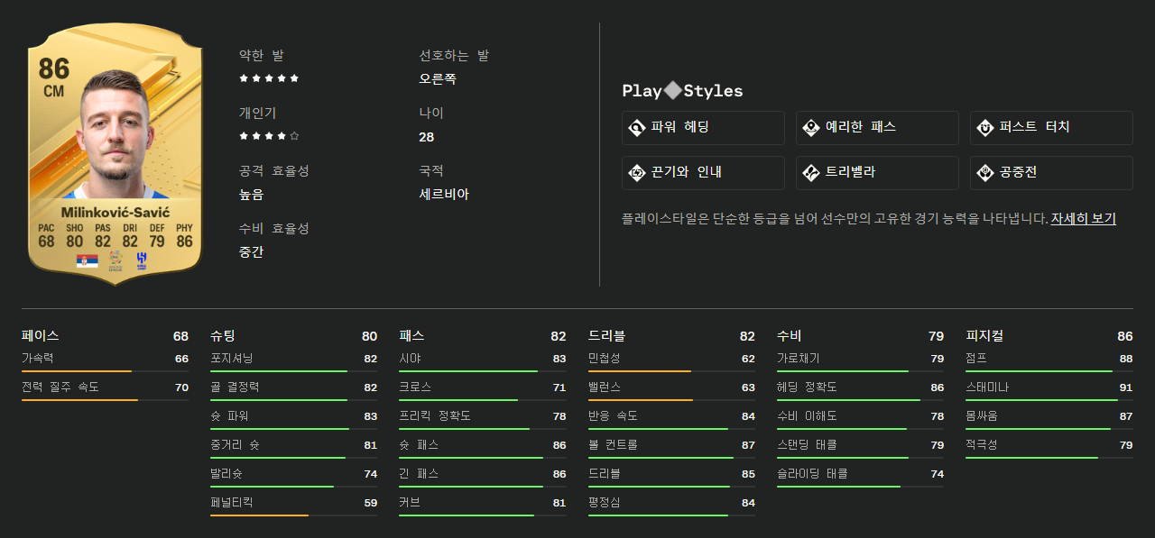 해리 케인은 제공권, 몸싸움, 슈팅력, 패싱력, 테크닉, 골 결정력 등 공격수에 필요한 모든 것을 갖춘 육각형 스트라이커입니다. 또한 양발잡이인만큼 다양한 각도에서 다양한 슈팅이 가능합니다.