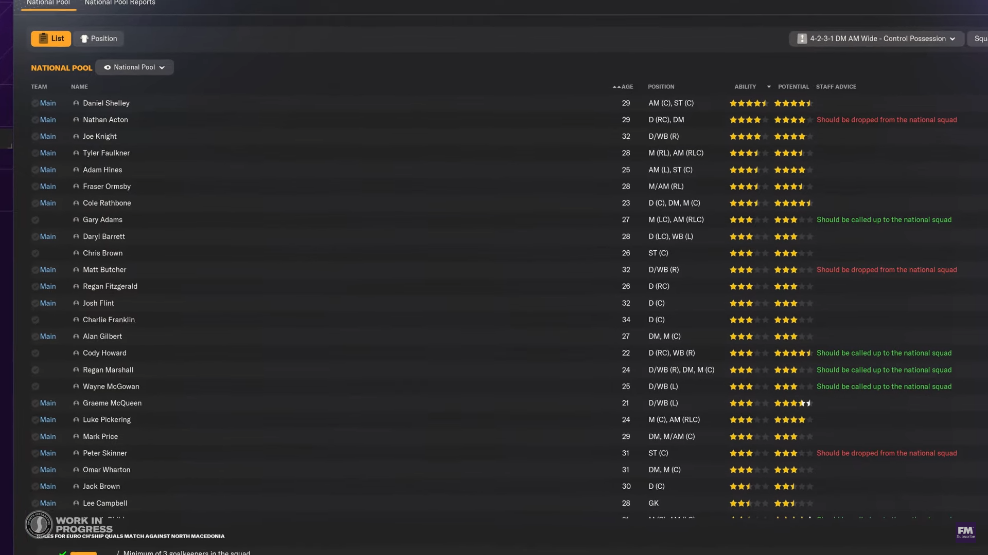 국대 선수 화면이 리뉴얼 되었습니다. FM시리즈를 플레이하시는 분들이라면 따로 유저가 제작하는 스킨을 많이 사용하지만 오리지널만 사용하고 계신 분들도 있다고 하니 이런 디테일한 곳도 많이 업데이트 해줬으면 하는 바램입니다.