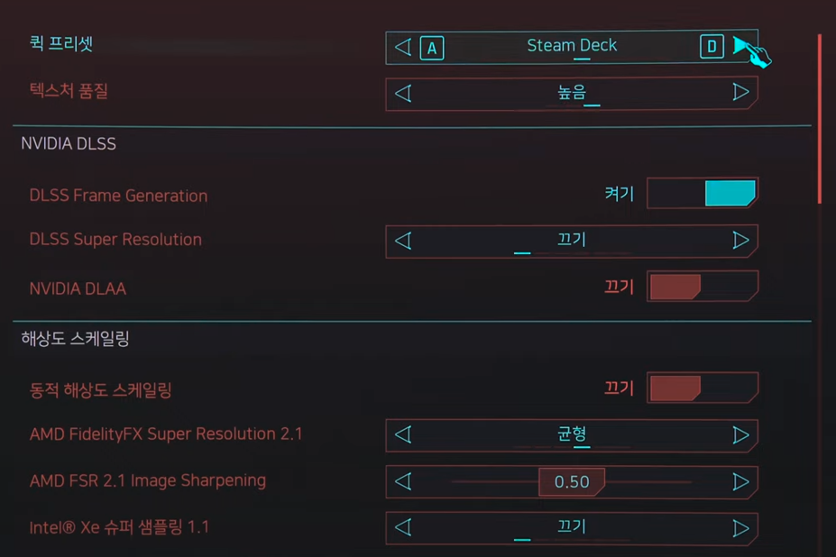 | AMD FidelityFX Super Resolution 2.1 | 균형 |