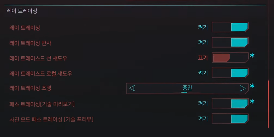 | 레이 트레이스드 로컬 섀도우 | 켜기 |