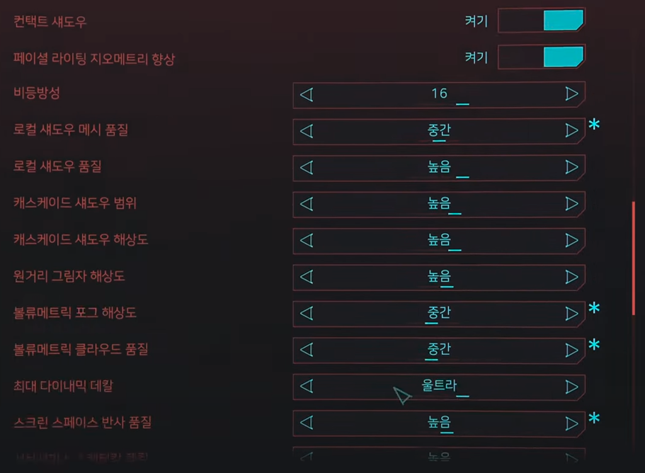 | 캐스케이드 섀도우 해상도 | 높음 |