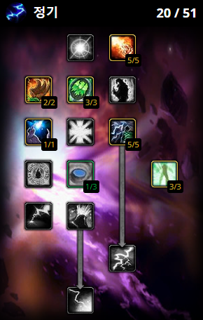 천둥의 능력 vs 산울림 - 어려운 선택이 될 수 있습니다. Call of Thunder는 Lightning Bolt로 당길 때 더 높은 치명타 확률을 제공하지만 Reverberation은 충격을 사용할 때 전체적으로 훨씬 더 높은 DPS를 제공합니다. 고양 주술사의 마나에 대한 갈증을 고려하면 어차피 재사용 대기시간에 충격을 사용하지 않을 것입니다. 그래도 대지 충격의 재사용 대기시간이 1초 줄어들면 킥을 1초 더 빨리 할 수 있다는 의미입니다.