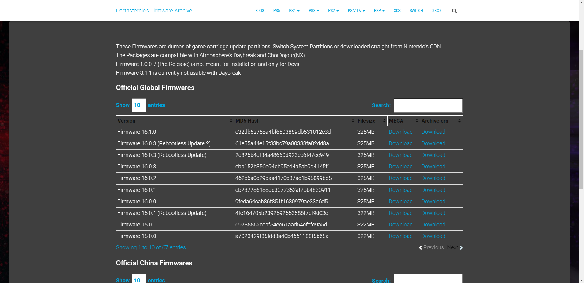 These Firmwares are dumps of game cartridge update partitions, Switch System Partitions or downloaded straight from Nintendo’s CDNThe Packages are compatible with Atmosphere’s Daybreak and ChoiDojour(NX)Firmware 1.0.0-7 (Pre-Release) is not meant for I