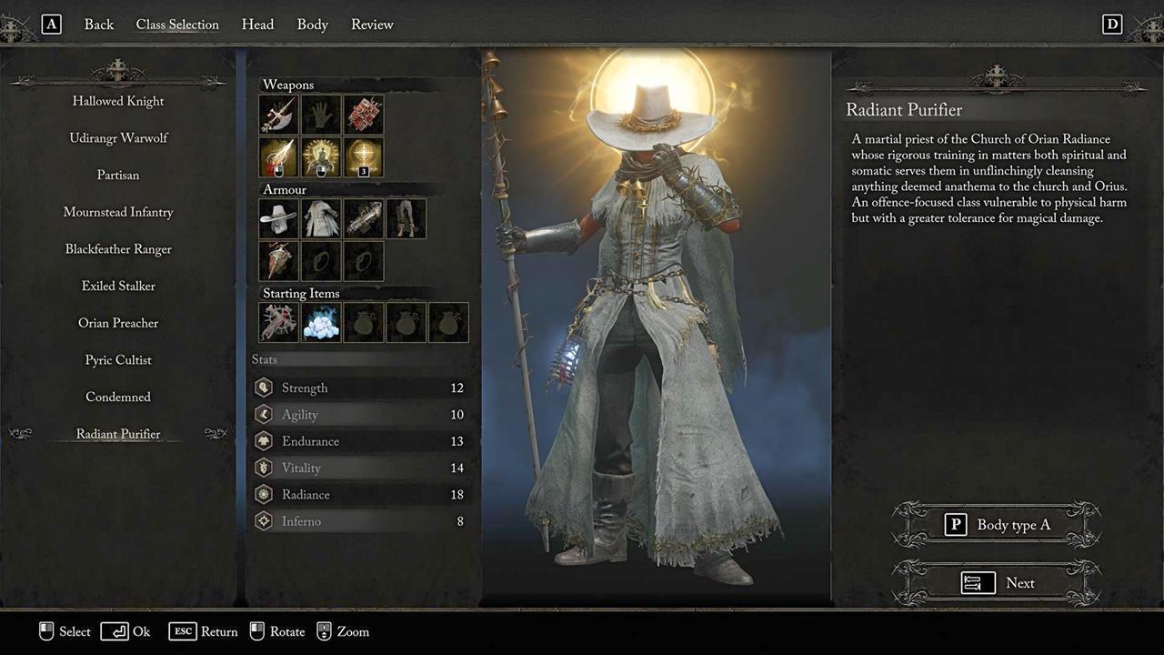 - 레디언트 전도사(Radiant Preacher) : 오리우스 전도사에 대한 새로운 해석으로 마법사 모양의 세트, 빛나는 촉매제, 미늘창 무기를 갖추고 있습니다.