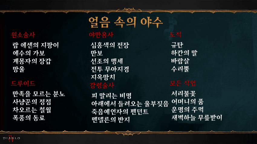 디아블로4 시즌2에서 드디어 안다뚜껑, 샤코 등의 고유 아이템을 위한 파밍을 시작할 수 있습니다. 시즌2에서 새로 추가된 보스 5종이 있는데 그리구아르, 바르샨, 얼음 속의 야수, 군주 지르, 두