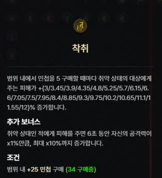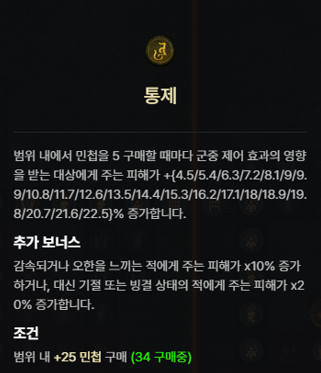 | 제어의 위상 | 이동 불가, 기절 또는 빙결 상태의 적에게 주는 피해가 [25 - 35]% 증가합니다. |