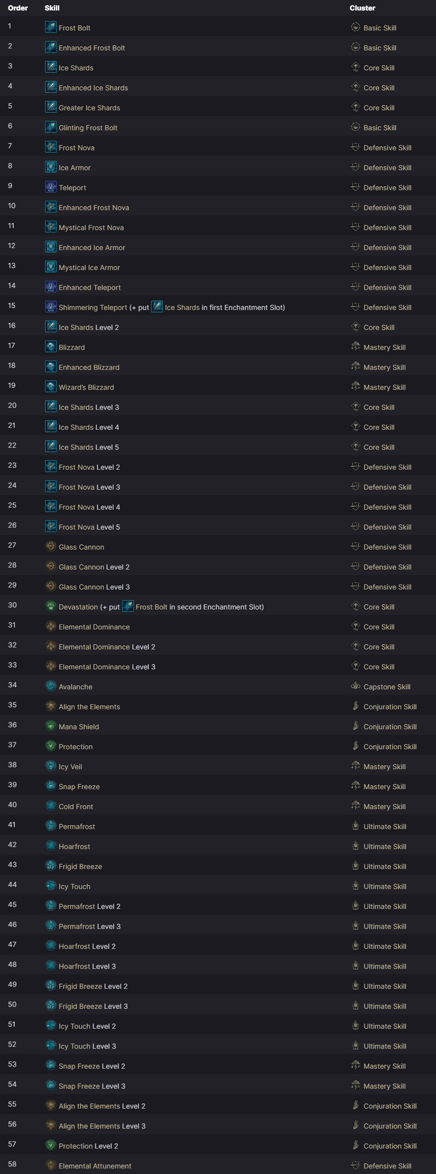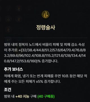 | 4 | + 지능, + 피해 감소 + 장벽 생성 + 최대 생명력 + % 이동 속도 + % 공격 속도 + 순간 이동 또는 얼음 갑옷 또는 눈보라 등급 |