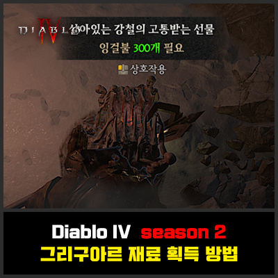 디아블로4 시즌2에서 보스 중 하나인 전류의 성자 그리구아르를 소환하기 위해서는 필요한 재료 아이템을 모아야 하는데 필드 이벤트 중 하나인 지옥물결에서 잉걸불 300개를 사용해 살아있는 강철의 고통받는 선물 상자(강철 상자)를 열면 소환 재료 살아있는 강철을 획득할 수 있습니다.