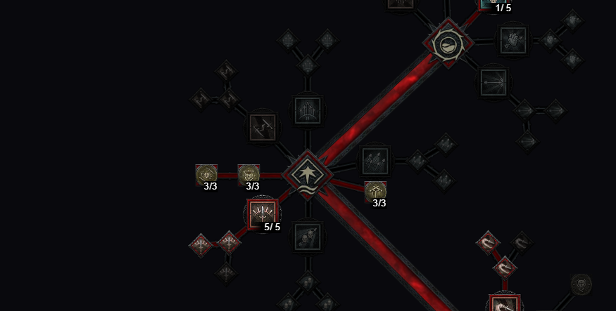 - 지배 (야성 1) : 기절, 이동 불가, 빙결, 또는 공포에 걸린 적에게 주는 피해가 24% 증가합니다. 해당 적이 추가로 부상 상태이며 정예가 아닌 적이라면 즉사합니다.