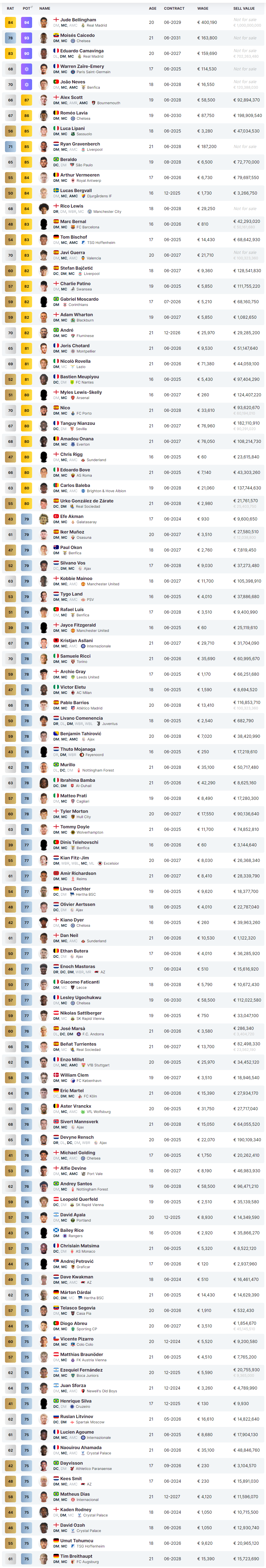 현재 등급은 최종 등급이 아닙니다. 각 선수의 평균 잠재 능력을 공정하게 반영한다고 느낄 때까지 매일 조정하겠습니다. 이는 유저의 편의를 위한 개인적인 추천 시스템입니다. 아래 나열된 젊은 선수들의 잠재적 발전에 대한 평가입니다.