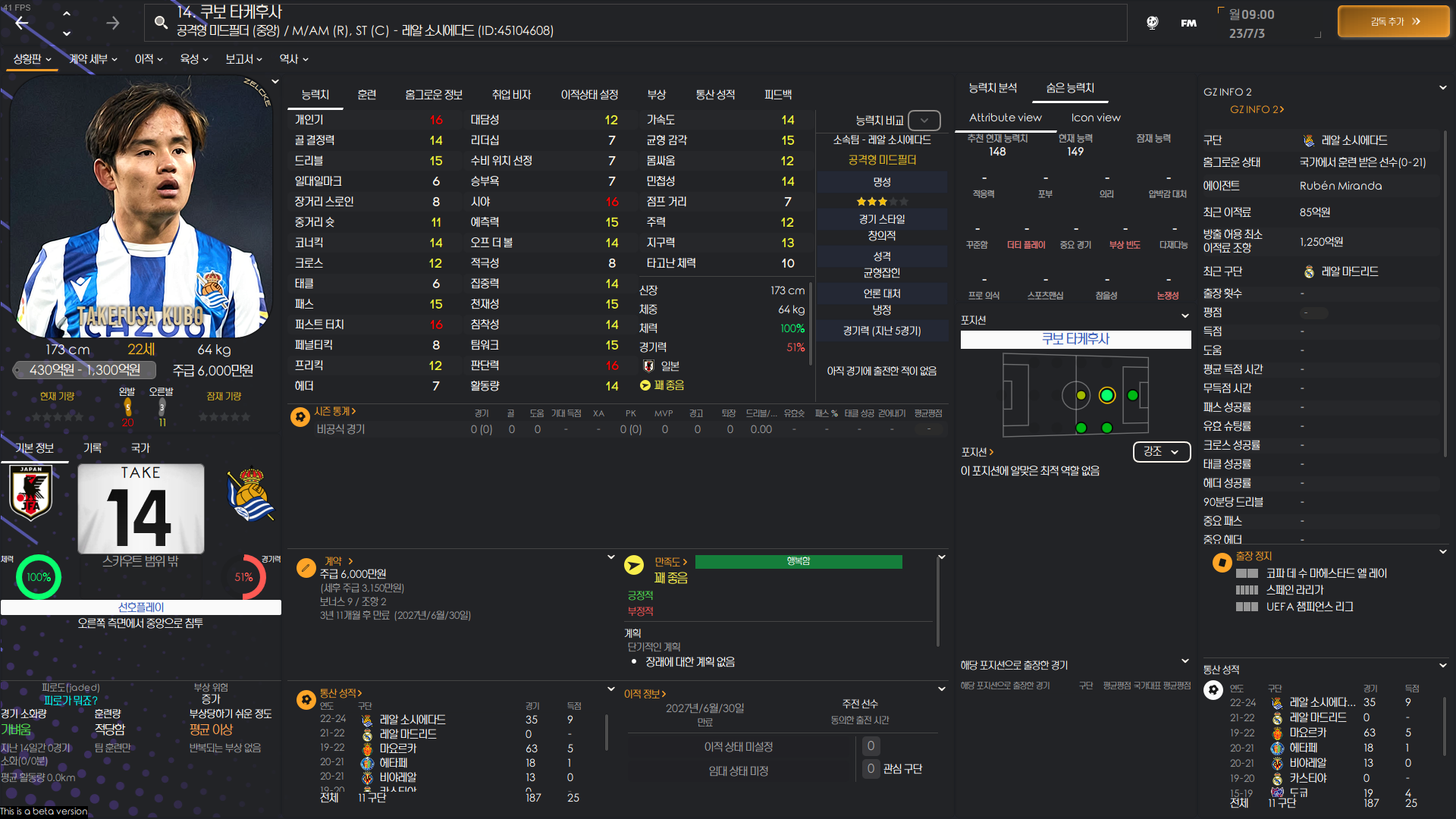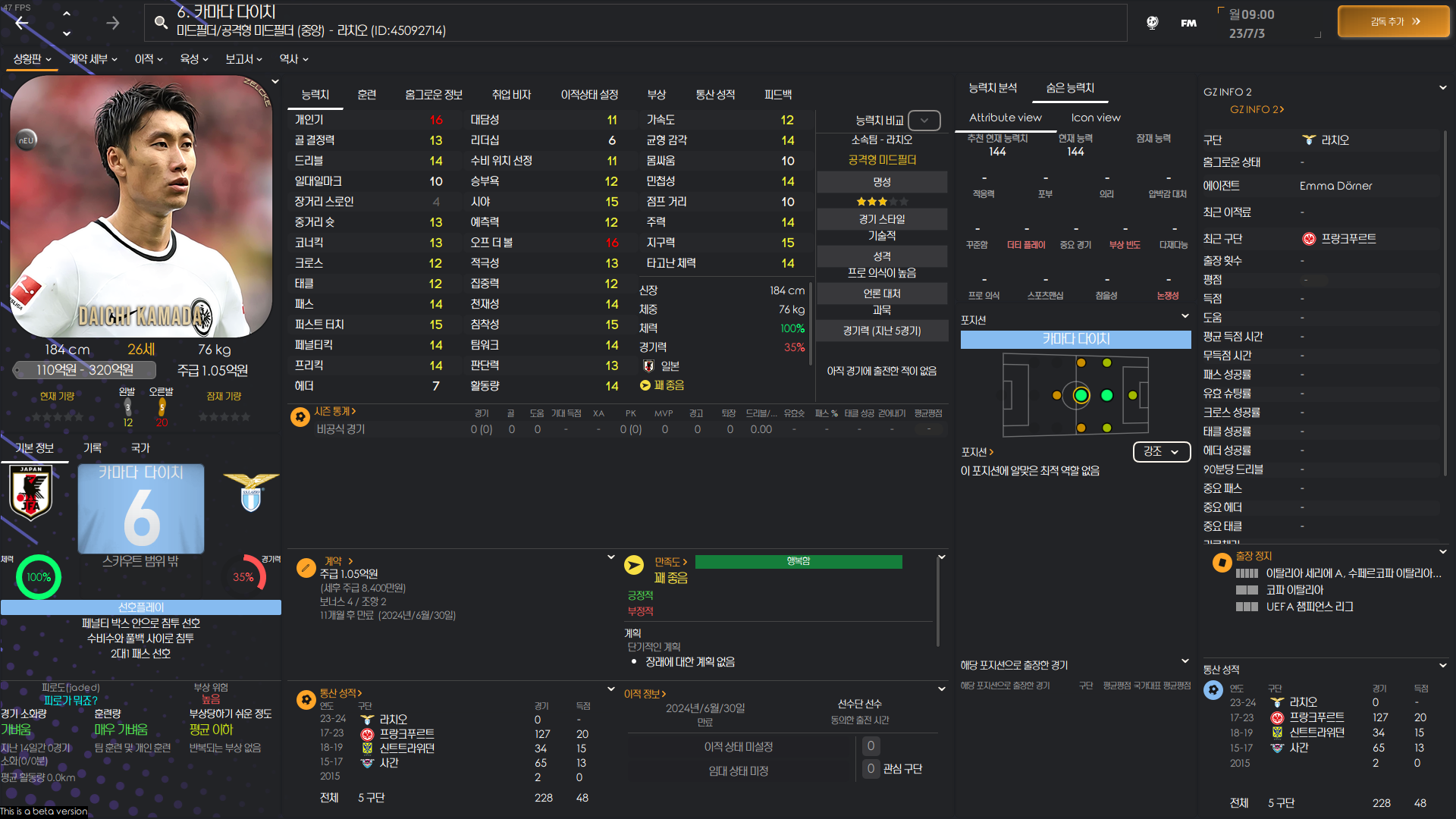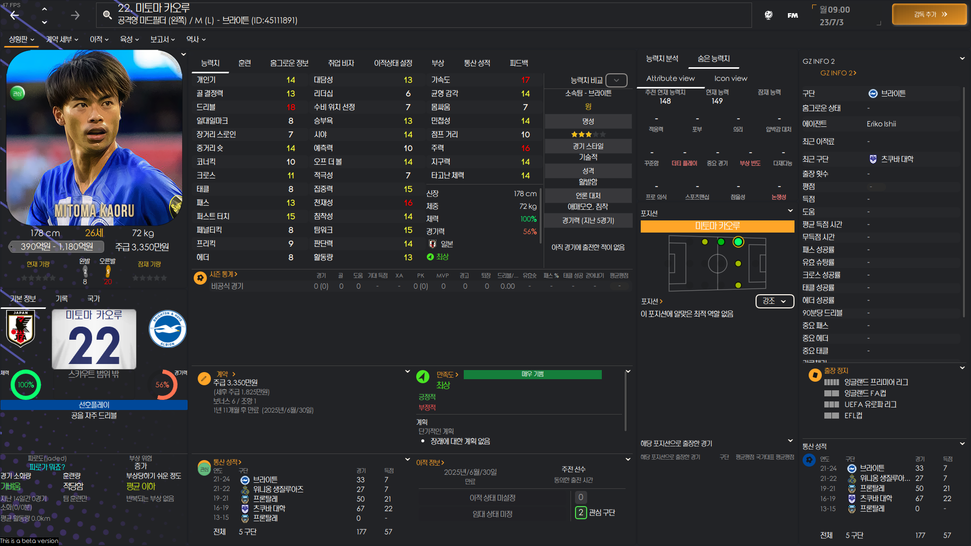 FM2024 주요 일본인 능력치 포텐 정리 글입니다.