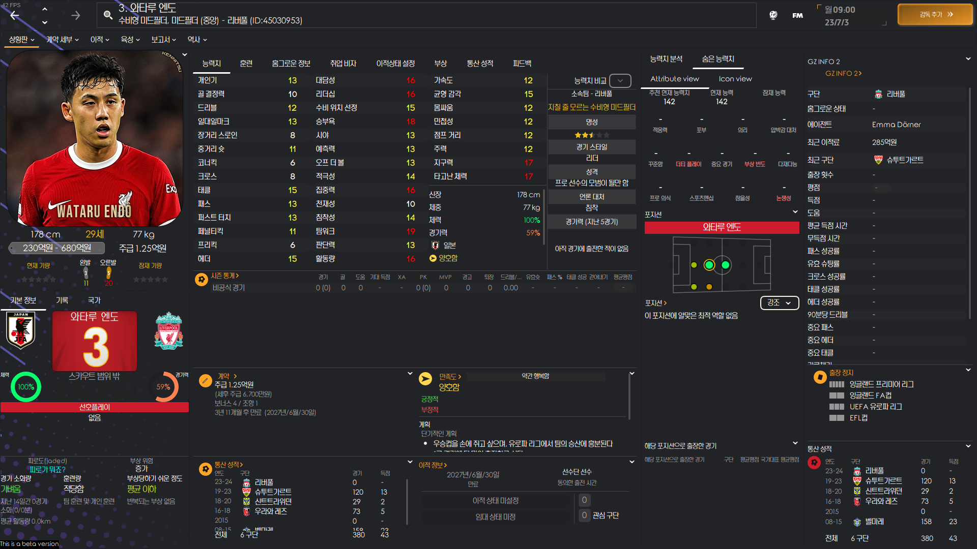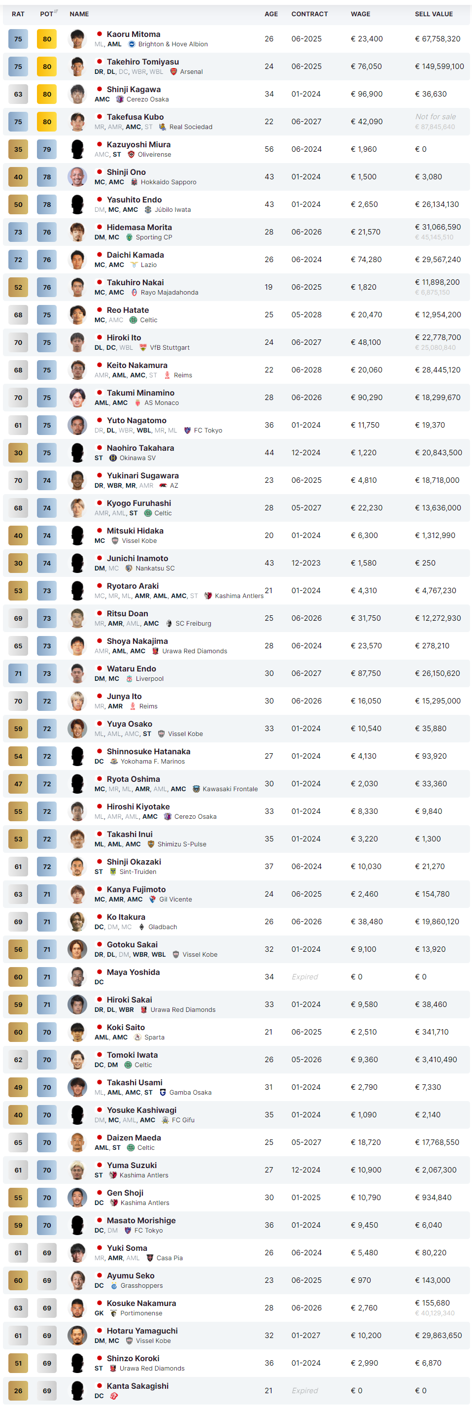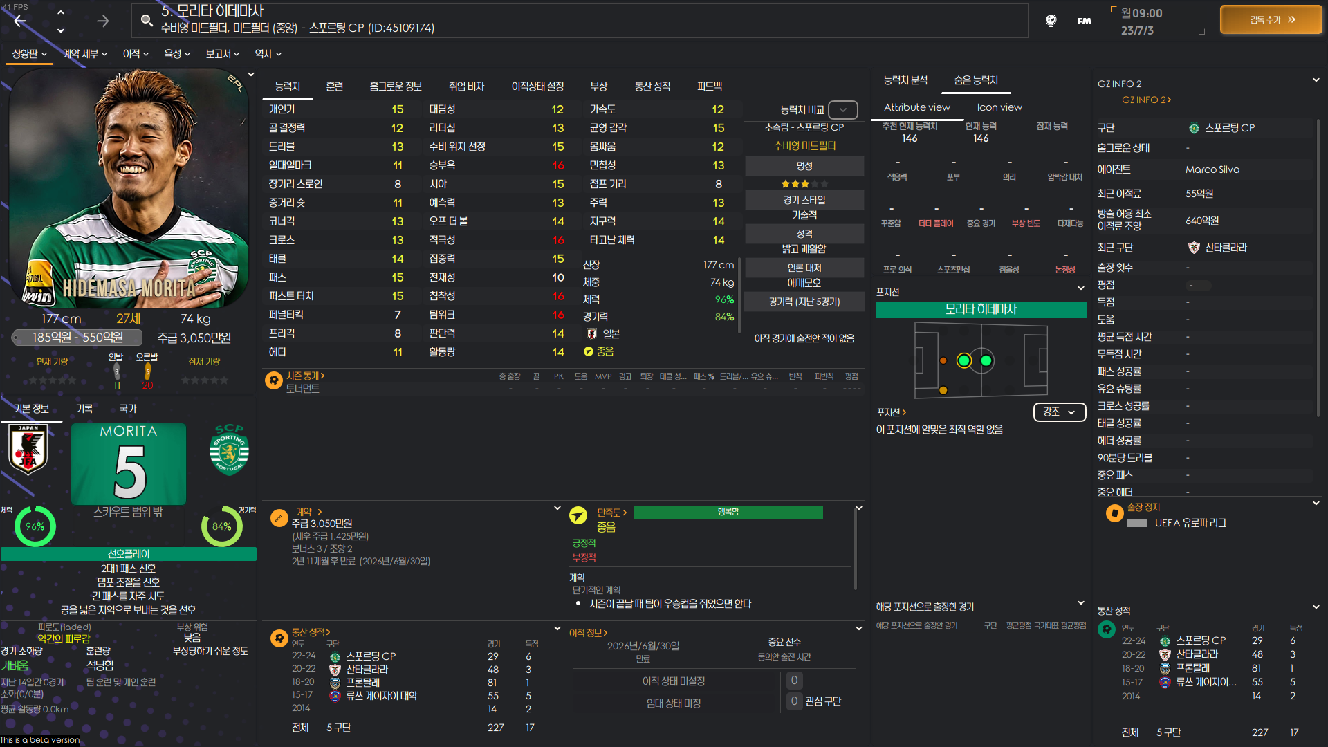 FM2024 주요 일본인 능력치 포텐 정리 글입니다.