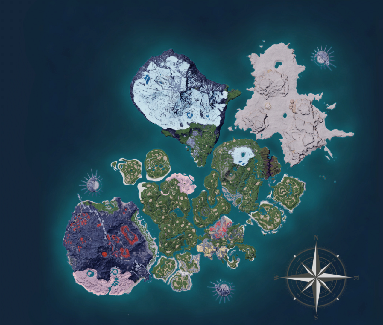 팰월드는 맵 자체가 상당히 큰 편입니다. 때문에 다양한 NPC, 수집품 등의 위치를 위해 전체 지도 맵 사진을 소개합니다.