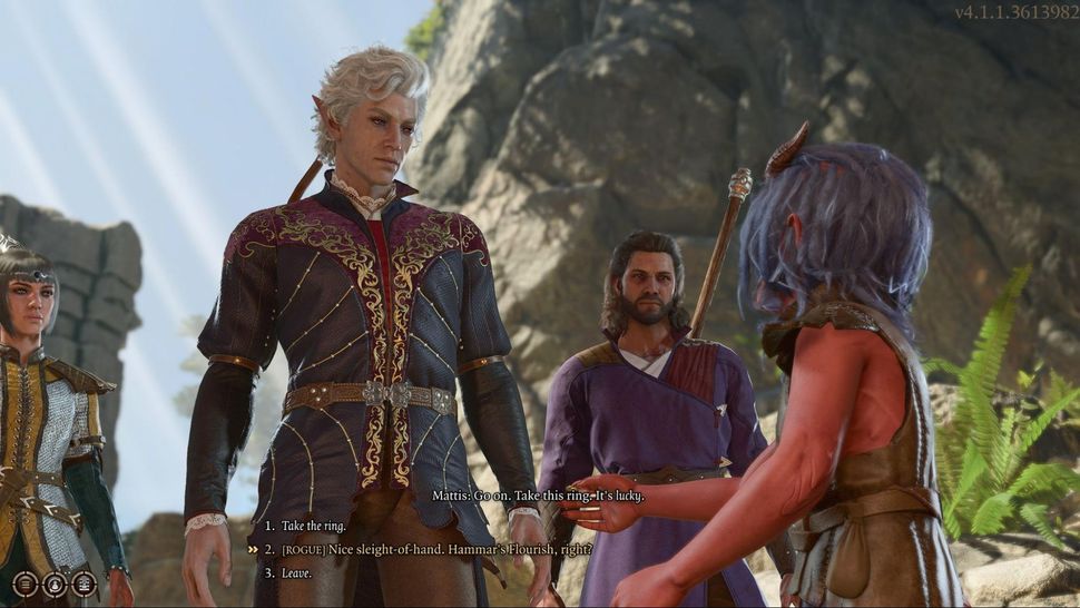 에메랄드 숲에 있는 열악한 난민들 사이에서 아이들과 이야기할 때 도적(커스텀 캐릭터를 플레이하지 않는 한 아스타리온과 같은)이 지적하도록 하는 것은 가치가 있습니다. 그들은 어디에서나 교묘한 다저스의 방식으로 플레이어에게 빠른 것을 당기려고 할 것입니다. 캐릭터가 도적이라면 그들의 시도된 사기를 발견하고 그들을 불러낼 때 전체적으로 여러 가지 독특한 대화 옵션을 얻게 될 것입니다.