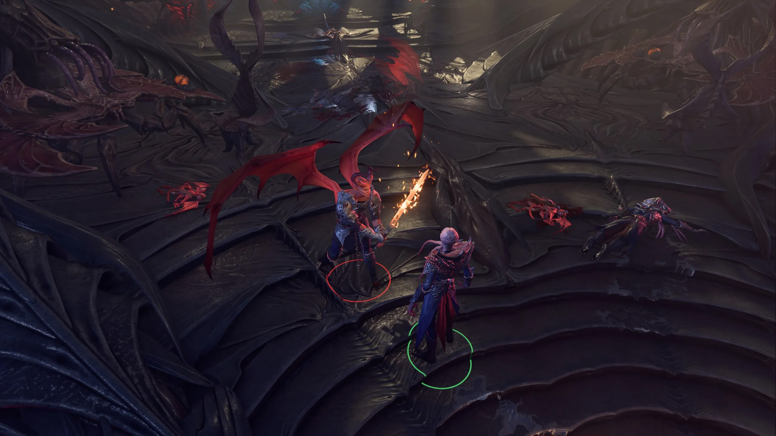 프롤로그를 진행하다보면 마인드 플레이어와 악마 사령관 잘크가 싸우는 것을 확인할 수 있습니다. 원래는 그냥 놔두고 탈출해야 하지만 마인드 플레이어가 그를 죽이는 것을 도우면 +d4 화염 피해를 주는 마법의 대검 영원불길검을 획득할 수 있고 이 무기는 1막 내내 큰 도움이 되는 최고의 양손검입니다.