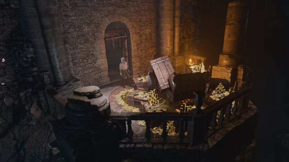 파괴된 마을에서 오른쪽에 있는 크고 허름한 나무 문을 향해 걸어가면 문이 잠겨 있는데 이를 우회하여 계단을 똑바로 올라가서 앞에 있는 작은 문을 열 수 있습니다.