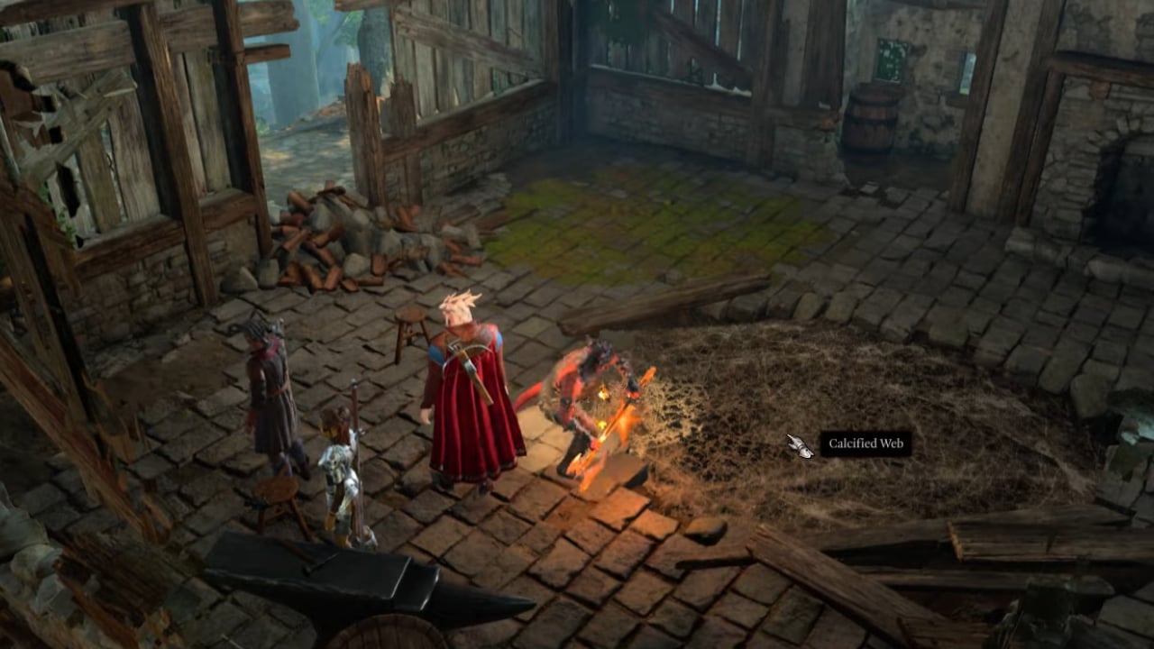 이후 구멍이 덮여있는 것을 발견할 수 있는데 석회화된 곳을 향해 파이어볼트 주문을 사용하여 불 발사체를 시전하면 불태우고 구멍을 열 수 있습니다. 그런 다음 아래 방으로 이동하기만 하면 됩니다.