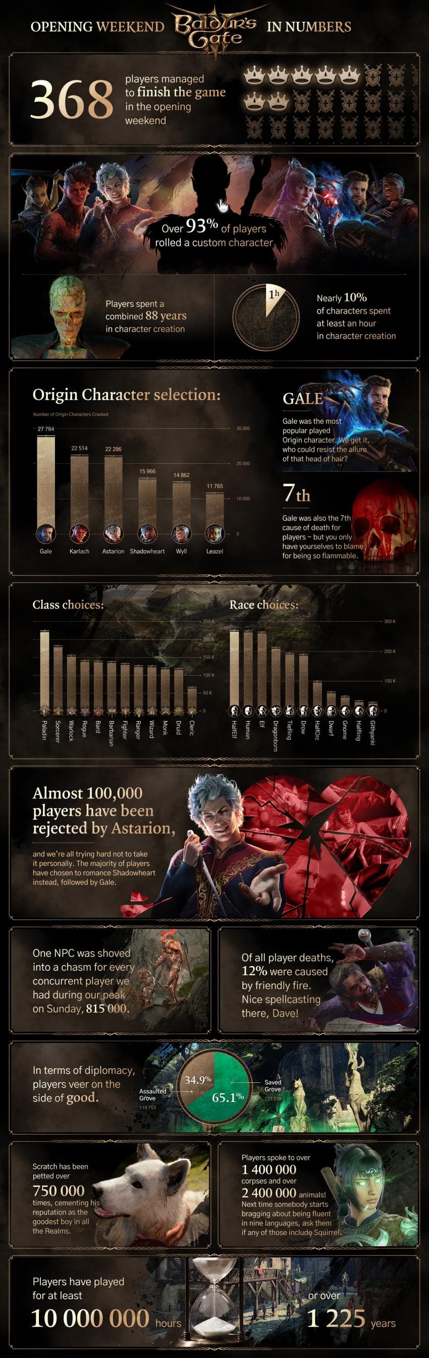 현재 뜨거운 관심을 받고 있는 발더스 게이트3의 출시 이후 첫주 동안의 통계가 나왔는데 여러 흥미로운 점들이 보였습니다. 이번 통계에서는 직업 선택, 종족 선택, 오리진 캐릭터 선택률 등 다양한 정보를 확인할 수 있습니다.