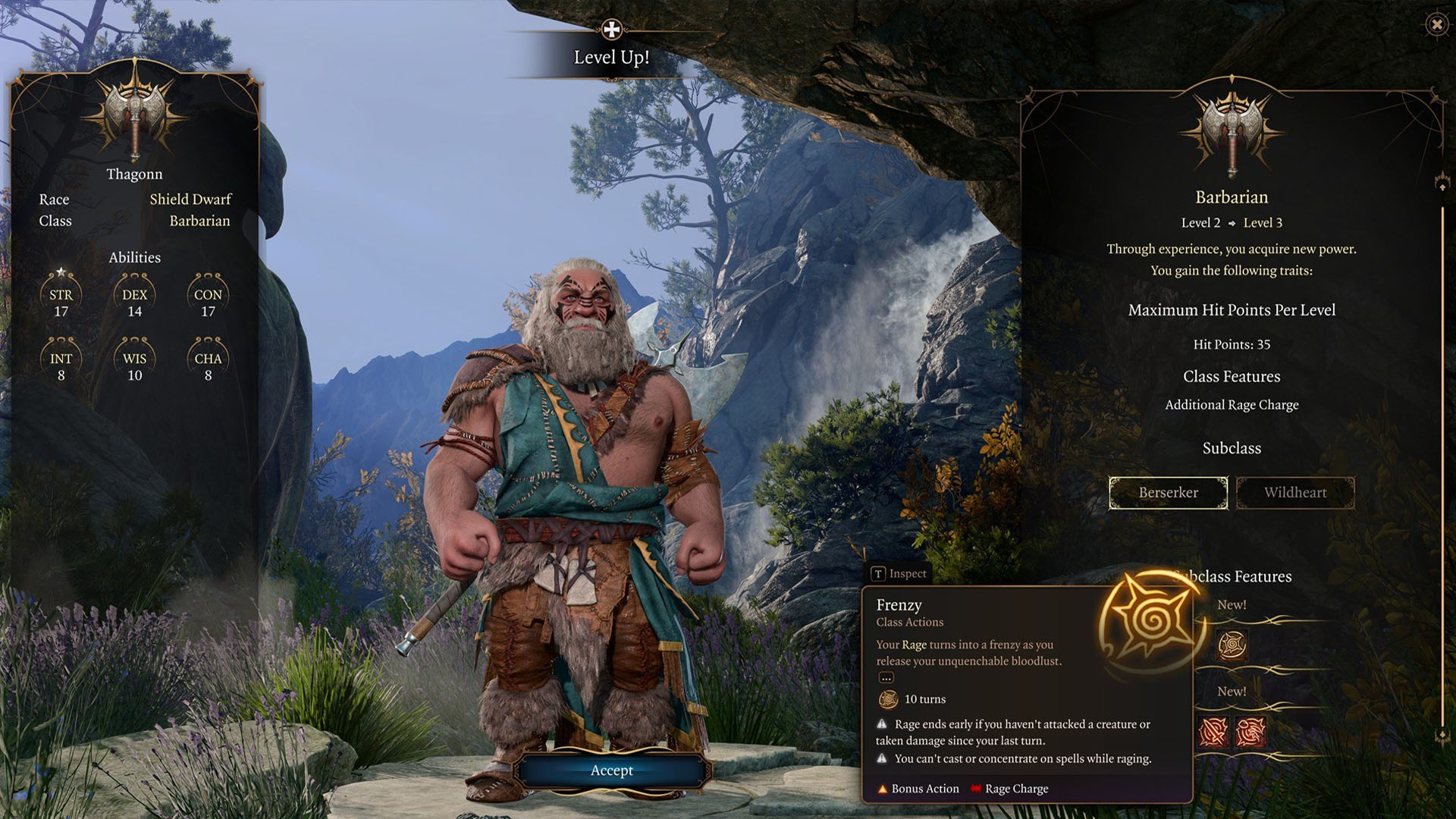 바바리안의 하위 클래스는 단연코 버서커를 추천드립니다. 버서커는 더 큰 공격적 이점을 위해 분노를 격분으로 대체하고 엄청난 피해 증가 때문에 이 하위 클래스를 선택하시길 추천드립니다.