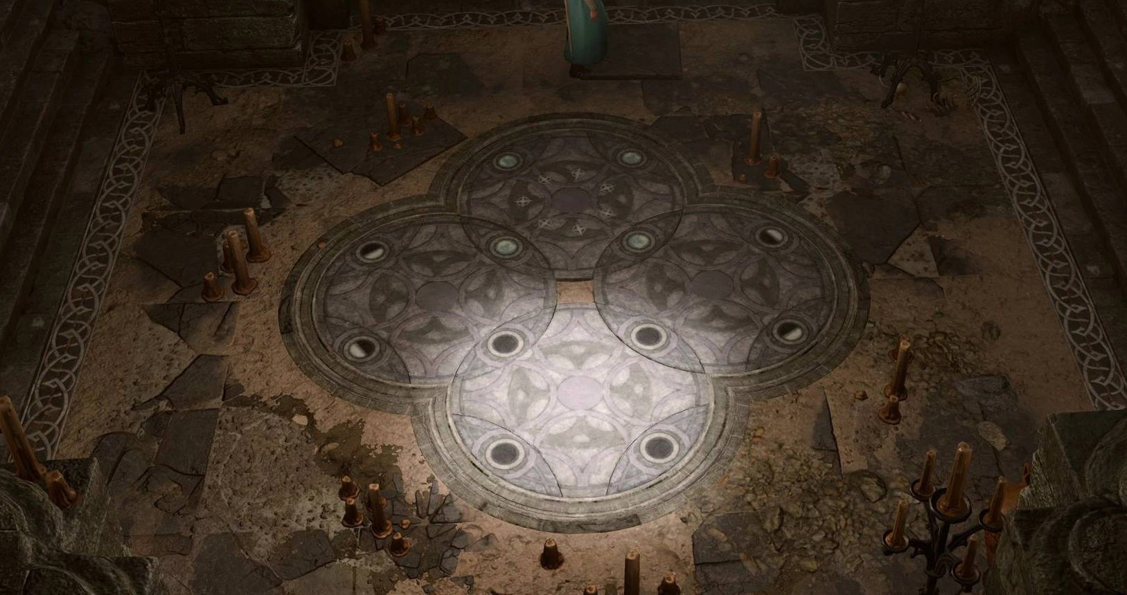 TIP : 퍼즐을 풀기 전 파티 그룹을 분할하고 이동하세요. 그렇지 않으면 다른 파티원이 퍼즐 위로 걸어가서 잘못된 퍼즐을 눌러 귀찮게 할 것입니다.