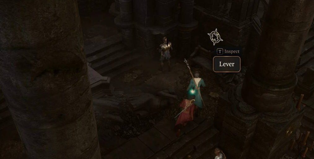 플레이어는 퍼즐을 풀지않고 우회하여 문을 열 수도 있습니다. 그러나 이 방법은 매우 높은 인식이 필요합니다. 파티원을 방 끝의 문 쪽으로 이동하면 그룹 구성원이 인식 검사를 수행하는 것을 알 수 있습니다. 인식 검사가 성공하면 레벨이 공개됩니다.