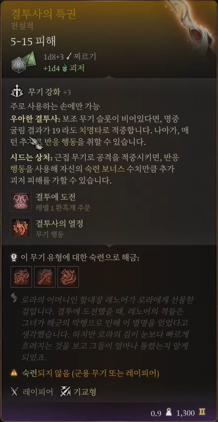 결투사의 특권은 발더스 게이트3에서 얻을 수 있는 전설 레이피어입니다. 이 전설 레이피어를 획득하기 위해서는 에텔 이모로부터 반라를 구출해야 하는데요. 1막에서 에텔 이모로부터 메이리